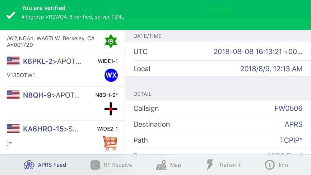 Once you enter the Call Sign SSID and APRS Passcode, you can view APRS messages in your area, as well as posting messaging to the APRS-IS network.