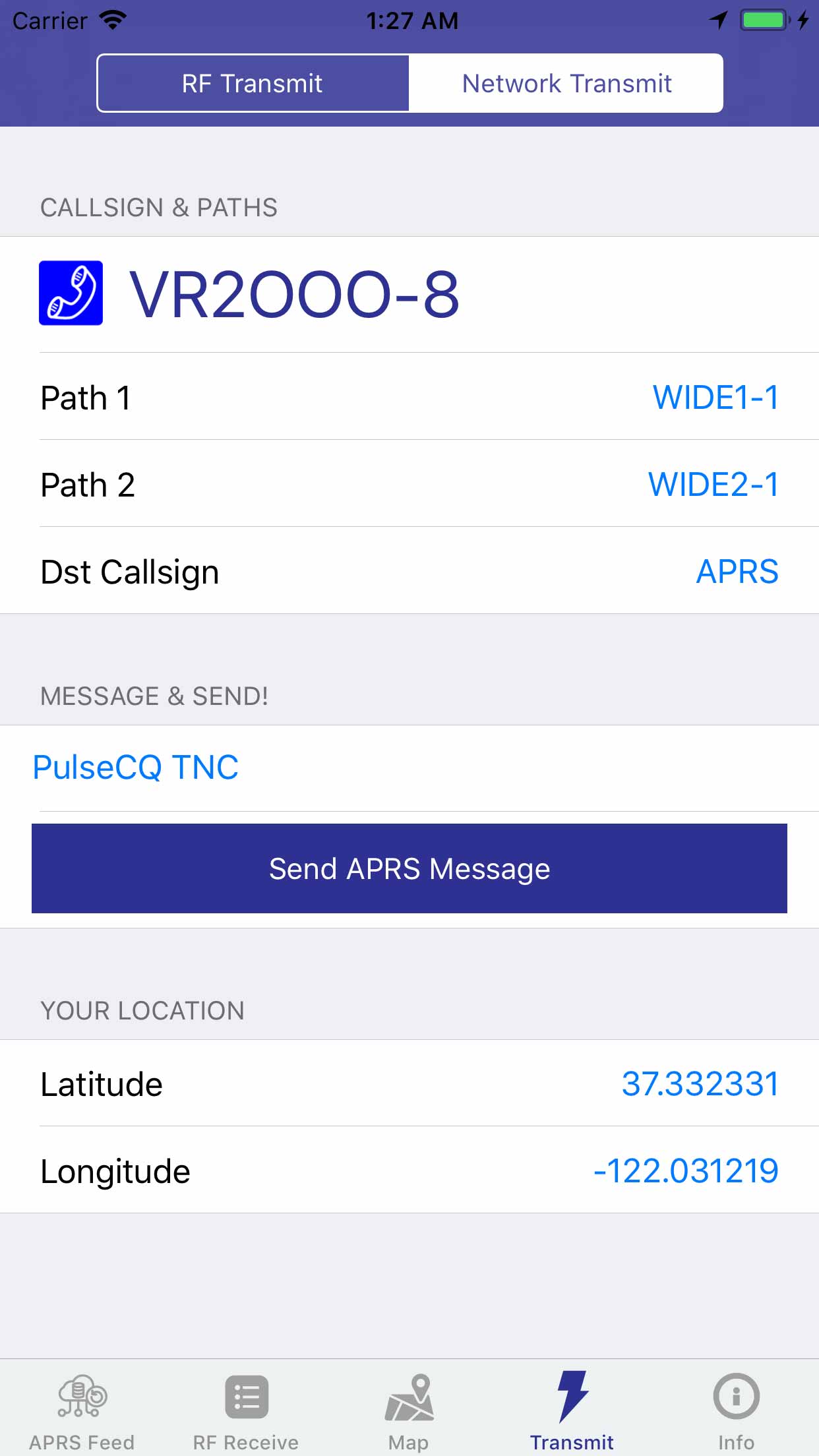 Just type a message, and click "Send ARPS Message". An AX.25 encoded AFSK audio will be generated, which can be transmitted in VOX mode with your radio.